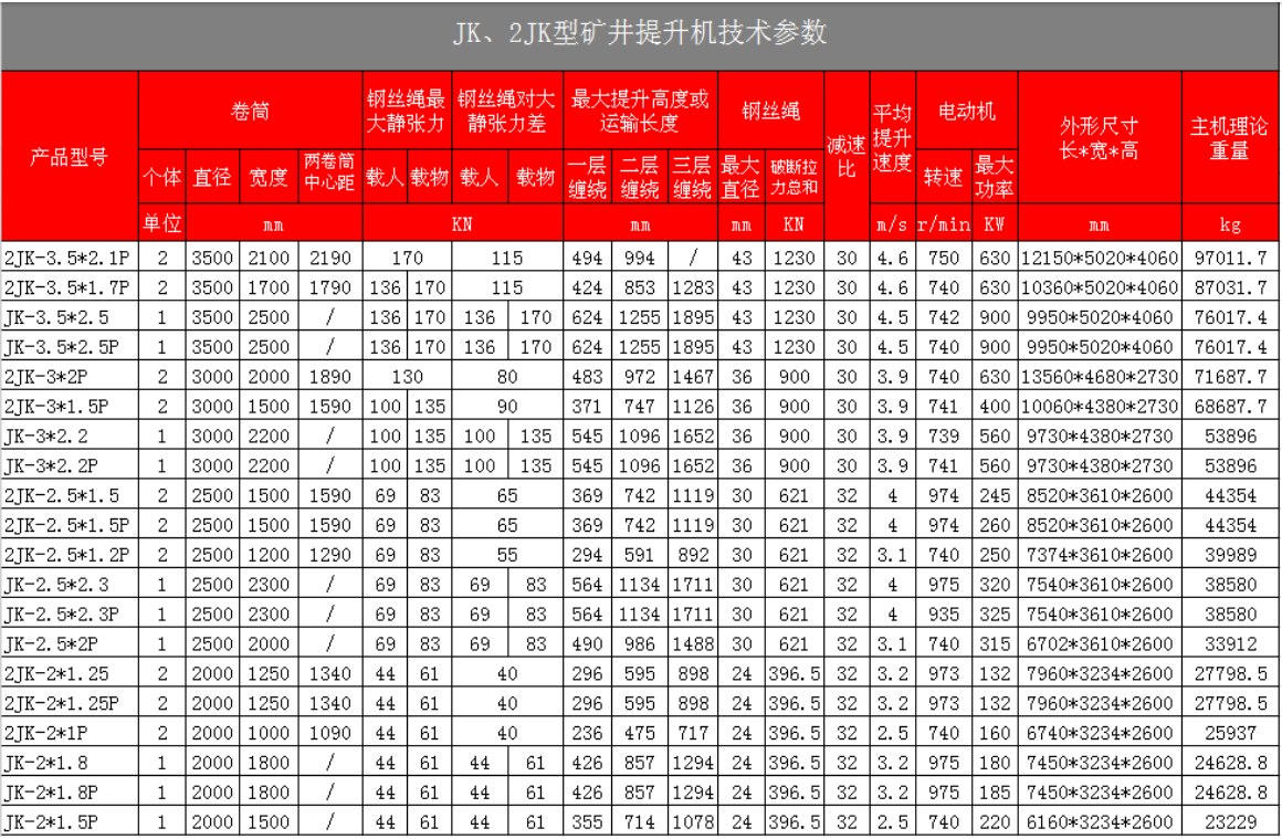 JK所指的含義:如JK3×2.2P,卷筒直徑是3米,寬度是2.2米;此型是非隔爆型的變頻調速單繩纏繞礦井提升絞車。